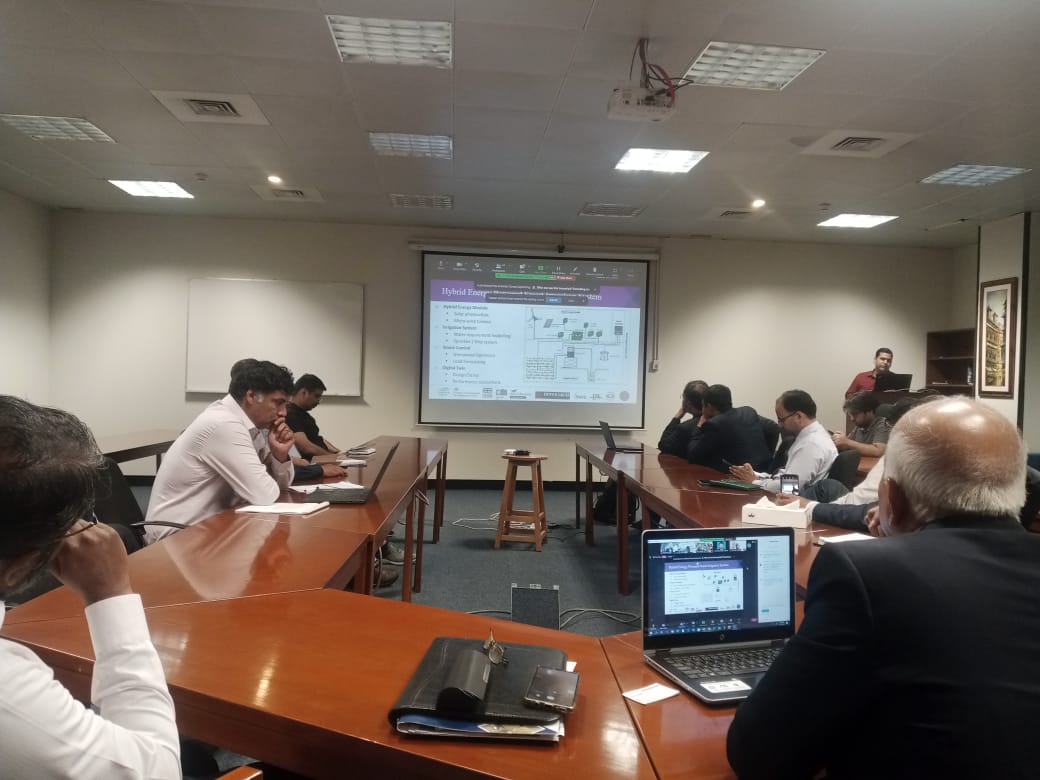 Dr. Muhammad Sultan and his project team at Bahauddin Zakariya University (BZU) joined the event. The Director (Test & Trail), AMRI, Multan is also collaborating with BZU team. The team discussed the need to develop a mathematical model to estimate the water requirement for selected cash and food crops, enabling more efficient and effective water usage in agriculture. The water requirement estimation will allow sizing of the water pumping system and energy module to power the pumping system.