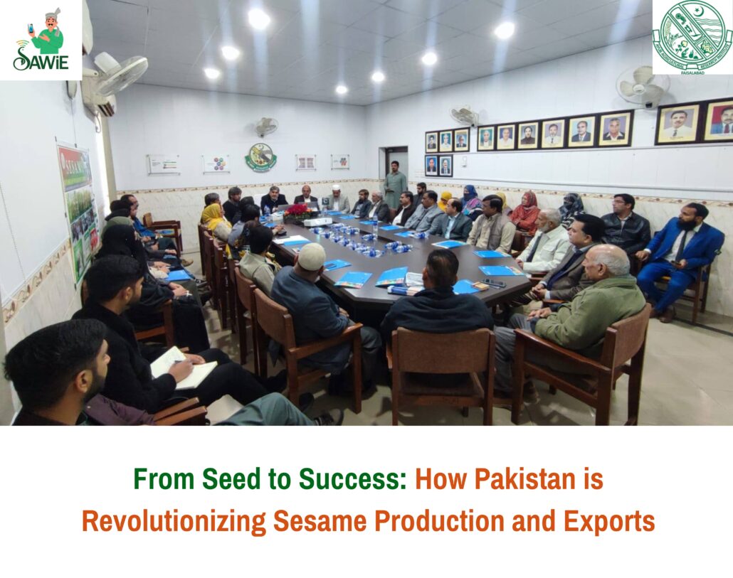 Despite this success, there remains significant room for improvement. Value addition, enhanced production techniques, and policy support are critical to unlocking the full potential of sesame as a high-value crop. Recognizing these opportunities, a stakeholders consultation meeting was organized at the Ayub Agriculture Research Institute (AARI) Faisalabad to discuss strategies for boosting sesame production and exports. SAWIE, a leading agricultural advisory organization, actively participated in this crucial event.