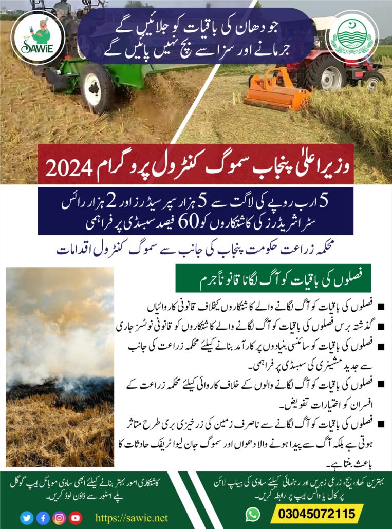 To address the serious issue of rice residue burning in Punjab, the government has launched a substantial financial relief package to support farmers in adopting more sustainable practices. This initiative aims to improve soil health and biodiversity while reducing the harmful effects of residue burning, particularly the smog that plagues Punjab during the winter season.