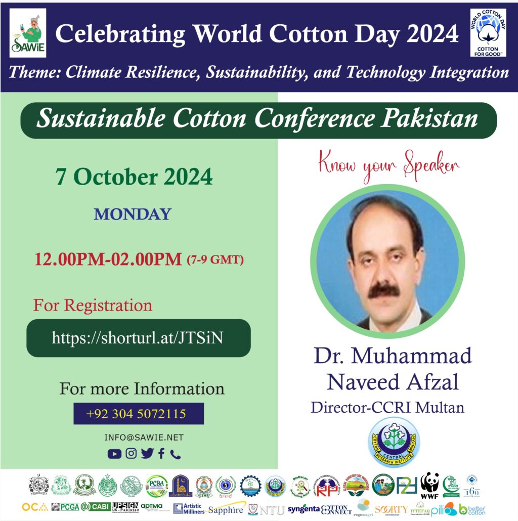 We are excited to announce that Dr. Muhammad Naveed Afzal, Director of the Central Cotton Research Institute (CCRI) Multan, will be joining us as a key speaker at the Sustainable Cotton Conference Pakistan 2024.