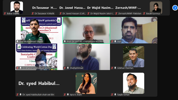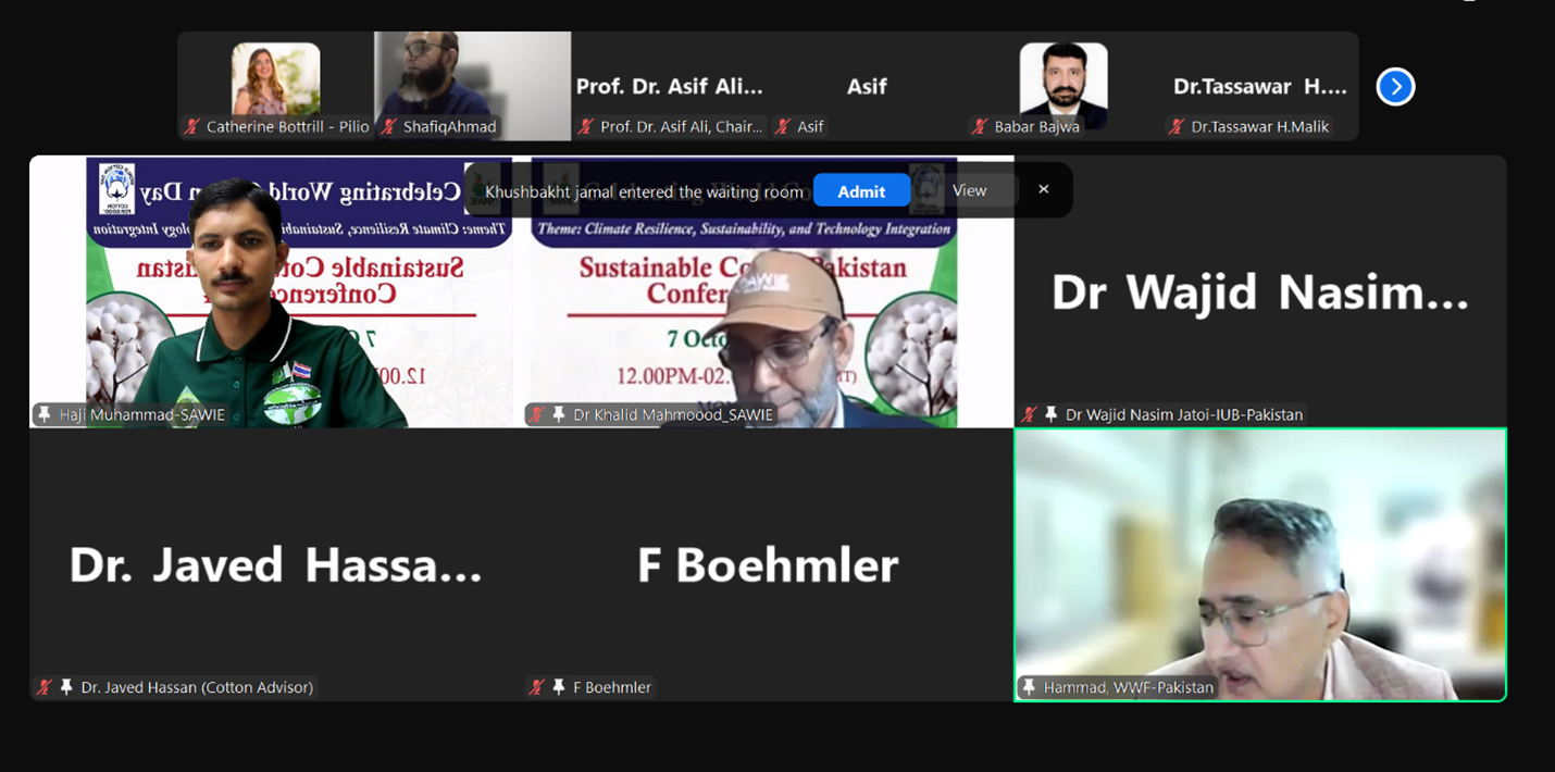 On October 7, 2024, SAWIE celebrated World Cotton Day by hosting the online “Sustainable Cotton Conference Pakistan 2024.” The theme of the conference was centered on climate resilience, sustainability, and technology integration, with the event divided into four comprehensive sessions. The conference was live-streamed on Facebook via Zoom and witnessed active participation from farmers, students, experts, industry leaders, and stakeholders across the cotton value chain.
